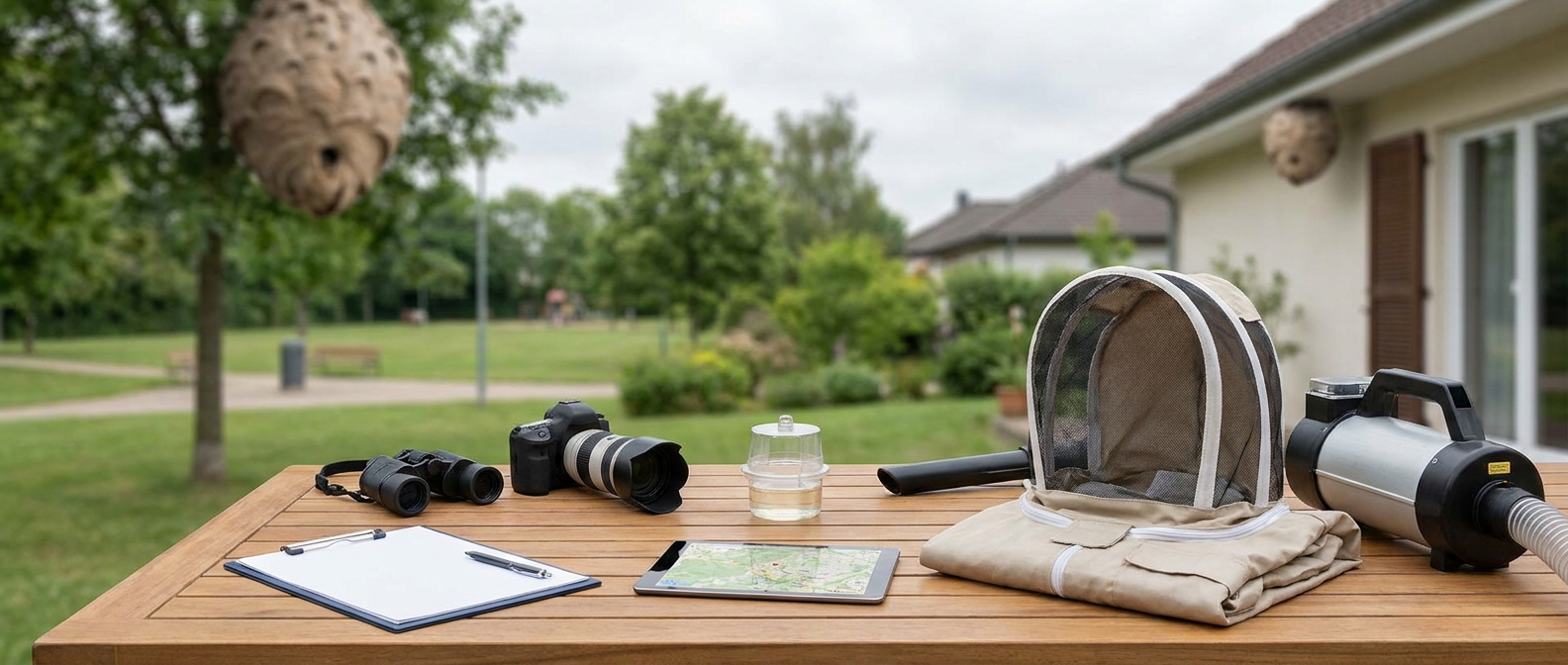 Que faire en attendant l’intervention ? Balisez la zone. Éloignez les enfants et les animaux domestiques. Ne faites pas de bruit excessif ni de vibrations à proximité du nid (tondeuse, perceuse). Gardez vos fenêtres fermées si le nid est proche de la maison. Ces mesures simples réduisent considérablement le risque de piqûre.